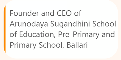 Founder and CEO, Arunodaya Sugandhini School of Education, Ballari.
